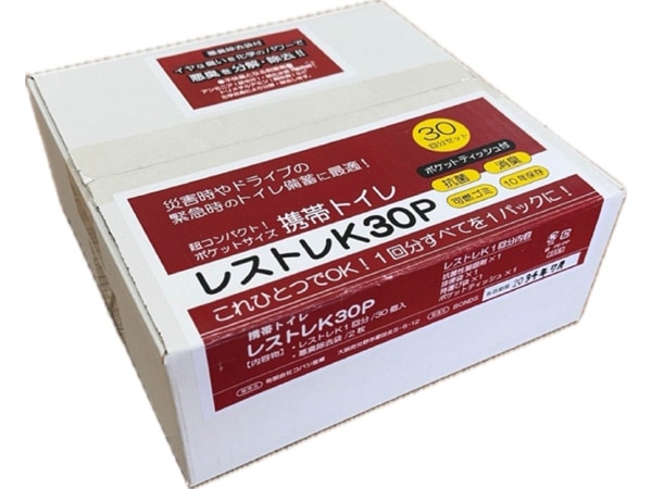 10年保存携帯トイレ レストレK30P ポケットティッシュ付 30回分【防災BLESS塾】手のひらサイズ